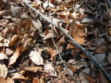 2012年 4月初旬 静 夕方の犬の散歩で、又、鹿に出合った。 鹿のほうも、「よく出会うなー」 と思っているのだろうか? 多分、牡鹿と思うが、何頭かは角が無く、片方だけの鹿が一頭、そして、短い角の若い鹿が二頭、まだ2本の角を持った鹿が数頭の群れであった。 こちらが止まって見ていると、鹿達も止まって ジィー と見ている。 しばらくの時間、鹿に話掛けて見ていたが、若い鹿から ソーッ と軽やかに歩いて去って行った。 最近、落ち葉が乱れている場所が所々見られる。 落ち葉の下のものが、目当てであるらしい。 森の中で、その動物らしき フン を見た。 多分、この間、夜中に 「キュウキュウ」 と鳴いていた動物であろう。 以前にも、二頭のその動物の 「真夜中のデート」 を目撃した。 丸っこいお尻を並べ、「ブヒブヒ」 と落ち葉の中に頭を突っ込んでいた彼等は、 イノシシ であった。 懐中電灯で照らしても、動じる気配は無く、仲良くお食事中であったので、 デートの邪魔は野暮なので、そーっと家の中に入った。 |