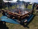2011年 秋 静 五月中旬 茅野市にある 尖り石考古館 で作った 「縄文のビーナス」 と 「仮面の女神」 のレプリカを焼き上げる 縄文火祭り の日がやってきた。 空は、真っ青な 秋晴れである。 中央に薪を組み 周りに作った 土偶 を並べる。 大きな土器を焼き上げる場所や、中位の土器の場所、三箇所の薪を積んだ、大きなサークルが出来上がってくる。 式展 が終わり、縄文火祭り の始まりだ。 焼き上げる時、割れてしまわない様に、土偶の並べ方や向き、温度、火の具合など、経験されている方達が、気を配って下さっている。 最初は、小さな遠火で、徐々に温度を上げていき、そして、どんどん薪を入れ、火を大きくして、全体に炎が廻るように薪をくべる。 秋空に舞い上がる炎に、一瞬にして、この地の縄文時代に、思いを持っていかれる。 薪をくべる。くべる。くべる。くべる時は、顔が焦げそうに熱い。 土偶の色が、赤茶に変化してくる。 炎がだんだん小さくなって、野焼きも、終わりに近づく。 「縄文のビーナス」 は、そのまま冷やすが、 「仮面の女神」 は、松の葉や藁で包み、燻して黒くする。 尖り石考古館の皆様のお蔭で、壊れることなく焼き上げられました。 感謝! 感謝! です。そして、一日 ありがとうございました。 ![]() 縄文のビーナス 仮面の女神 |