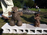 2012年 5月19日 晴れ 静 長野県茅野市尖石縄文考古館にて 「土偶作りに挑戦」 の講座に一日のみだが、参加する。 一日で仕上げられる 土偶 という事で、小さい可愛らしい土偶 2体を、二人で 1個ずつ作る。 「縄文のビーナス」 「仮面の女神」 はレプリカであるが、この可愛らしい2体は、本物の出土した 土偶 である。 AM 9;30 館長の説明、ガイドさんの解説を聞いた後、制作開始。 小さい土偶 だが、結構、難しい。 顔の部分の作り方が、どうなっているのか、良く見ていかないと分からない。 掘り込みが深いので、厚みをとっておかないと・・・。 昼を食べ、午後の制作に入る。 掘り込み、文様、フォルムの直し 等等。 バランスが、多少、狂っているが 完成! 今回も 縄文考古館 の皆さんには、お世話になりました。 ありがとうございました。 |
